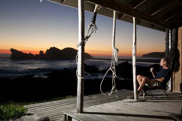 Overlooking the Indian ocean, with spectacular views of the Robberg Peninsula, the renovated wooden shack sleeps eight people in four double bunk beds in an open-plan room. Only one group can book at a time.