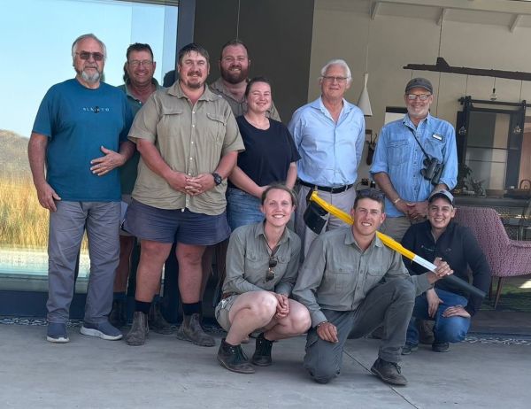 From left to right on photo of participants at initial planning meeting: Frans Steenkamp (farmer), Jurie Klu (farmer), Jannie Ellis (farmer), Giel Swiegers (farmer), Lydia Swiegers (farmer), Shania Fincham (field guide), Attie van der Merwe (farmer), Stephen Moss (field guide), Tom Barry (CapeNature), Melita Weideman (CapeNature).