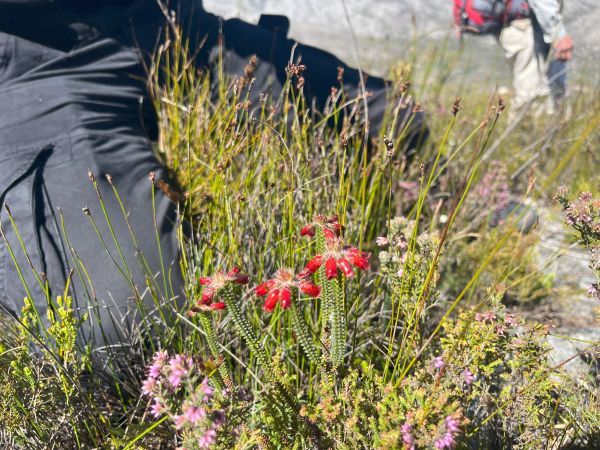 CapeNature staff, in partnership with members of the Custodians of Rare and Endangered Wildflowers (CREW), embarked on a challenging expedition to conduct threatened flora monitoring on the Buffelstalberg in the Kogelberg Nature Reserve, which has the only known population of Erica cunoniensis, with about 200 individuals in historic records.